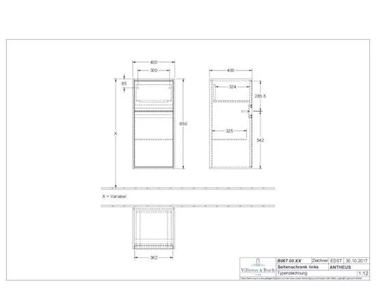 Мраморная черная столешница с подставкой из глянцевой стали 1200х750х570 мм Antheus B064 00 RP Villeroy&Boch в комплекте с зеркалом и Шкаф-пеналом